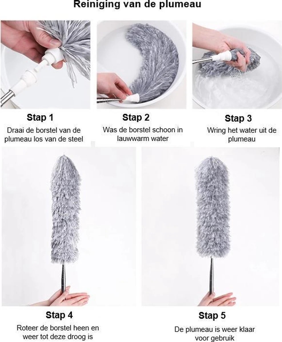 7Style Collection – Microvezel Plumeau Met Uitschuifbare Telescoopsteel Tot 280 CM – Ragebol RVS