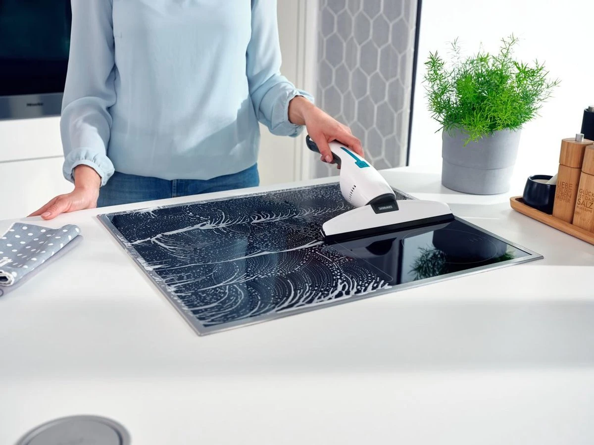 - Inclusief speciale badkamerzuigmond met wit wisserblad voor hygiënisch schoonmaken van spiegels, tegels en douchecabines
