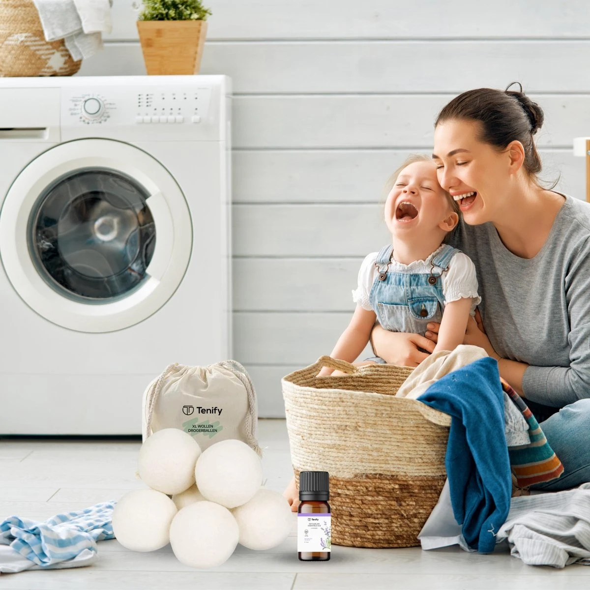 Tenify 6 XL Drogerballen + Extra Lavendel Olie – Wasbollen – Duurzaam – Schaapswol – Wasverzachter – Wasdrogerballen – Herbruikbare Droogballen – Energie Besparen