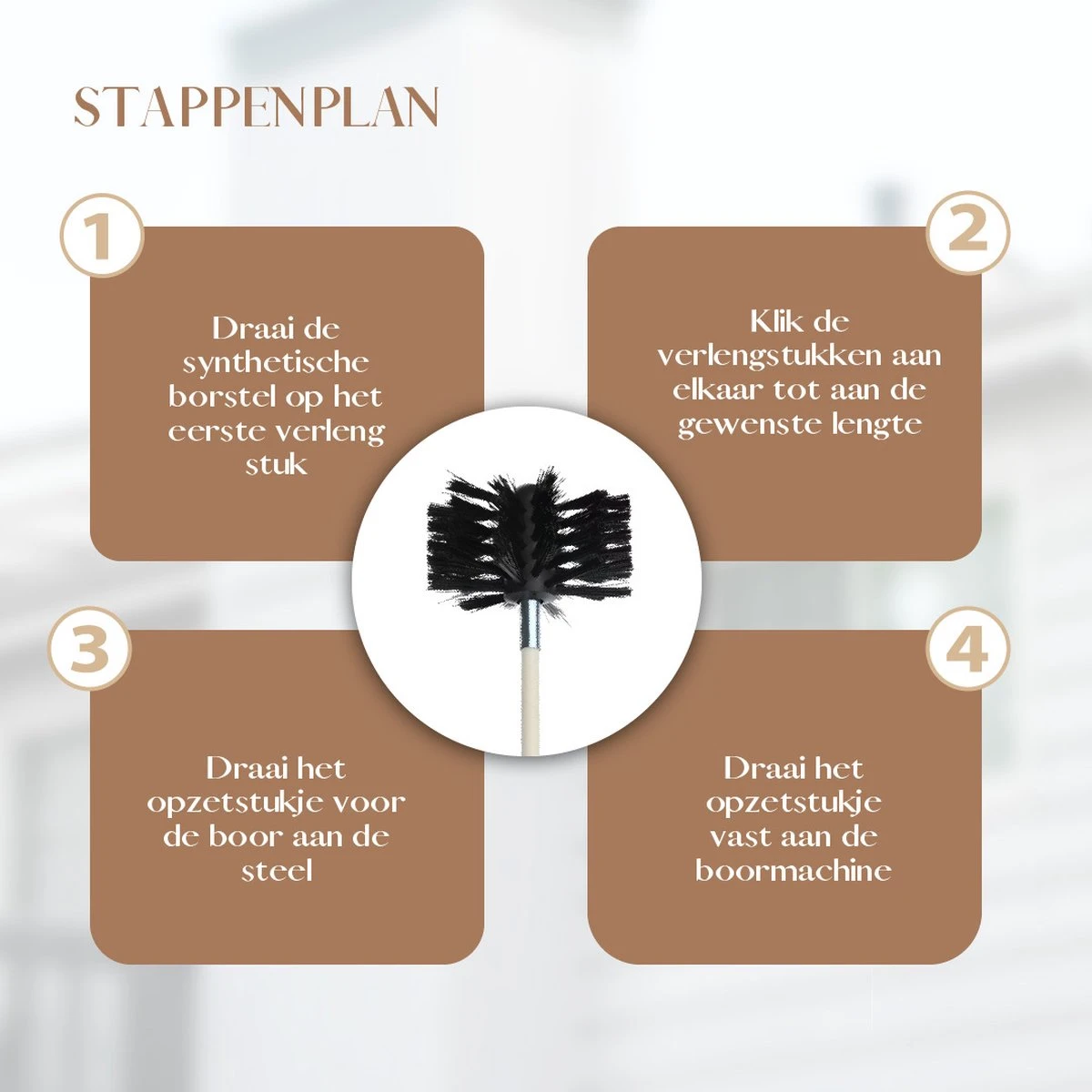 Waay Lifestyle Schoorsteenveegset – Schoorsteenborstel 6 Meter – Schoorsteenreiniger – Schrobborstels – Schoorsteenveger – Flexibele Steel – Geschikt Voor Boormachine – Wit