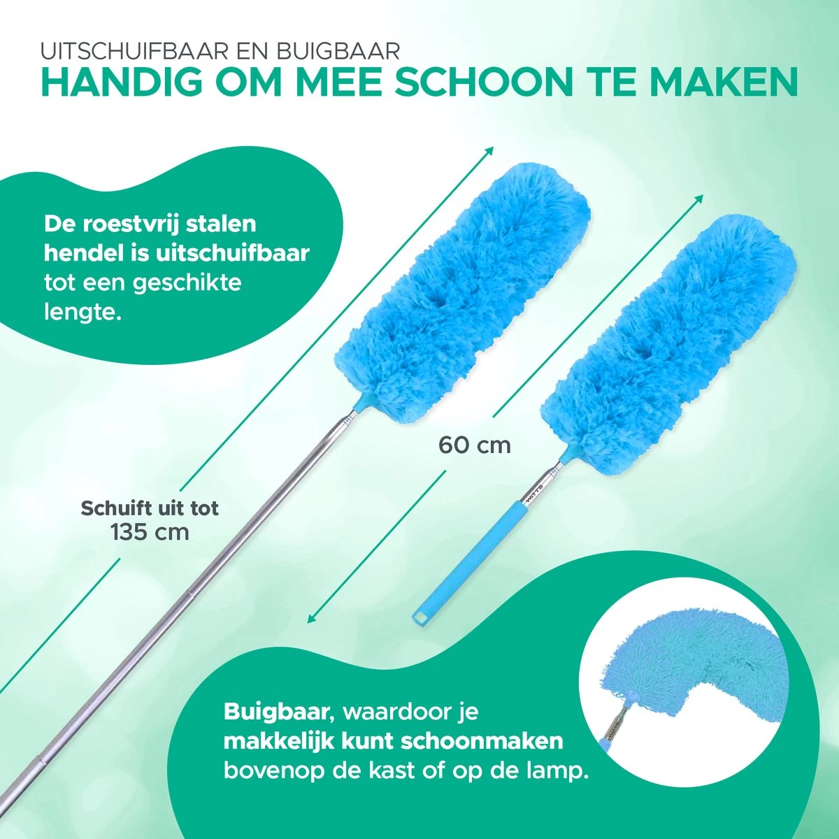 WITTS Telescopische Plumeau Met Telescoopsteel – 60 Tot 140 Cm – Uitschuifbaar – Blauw